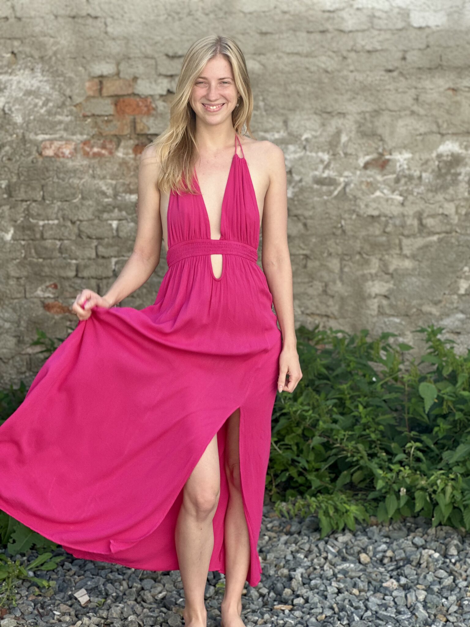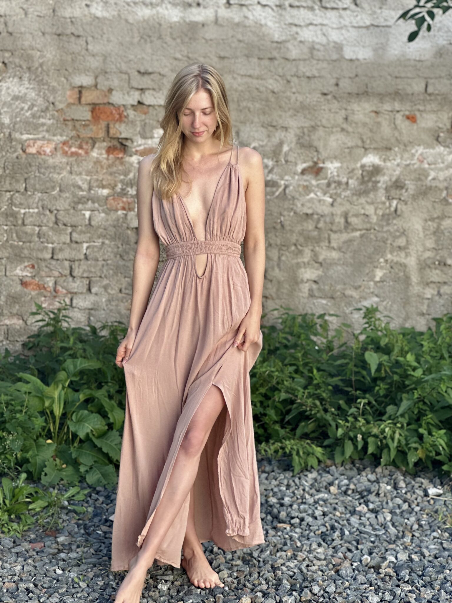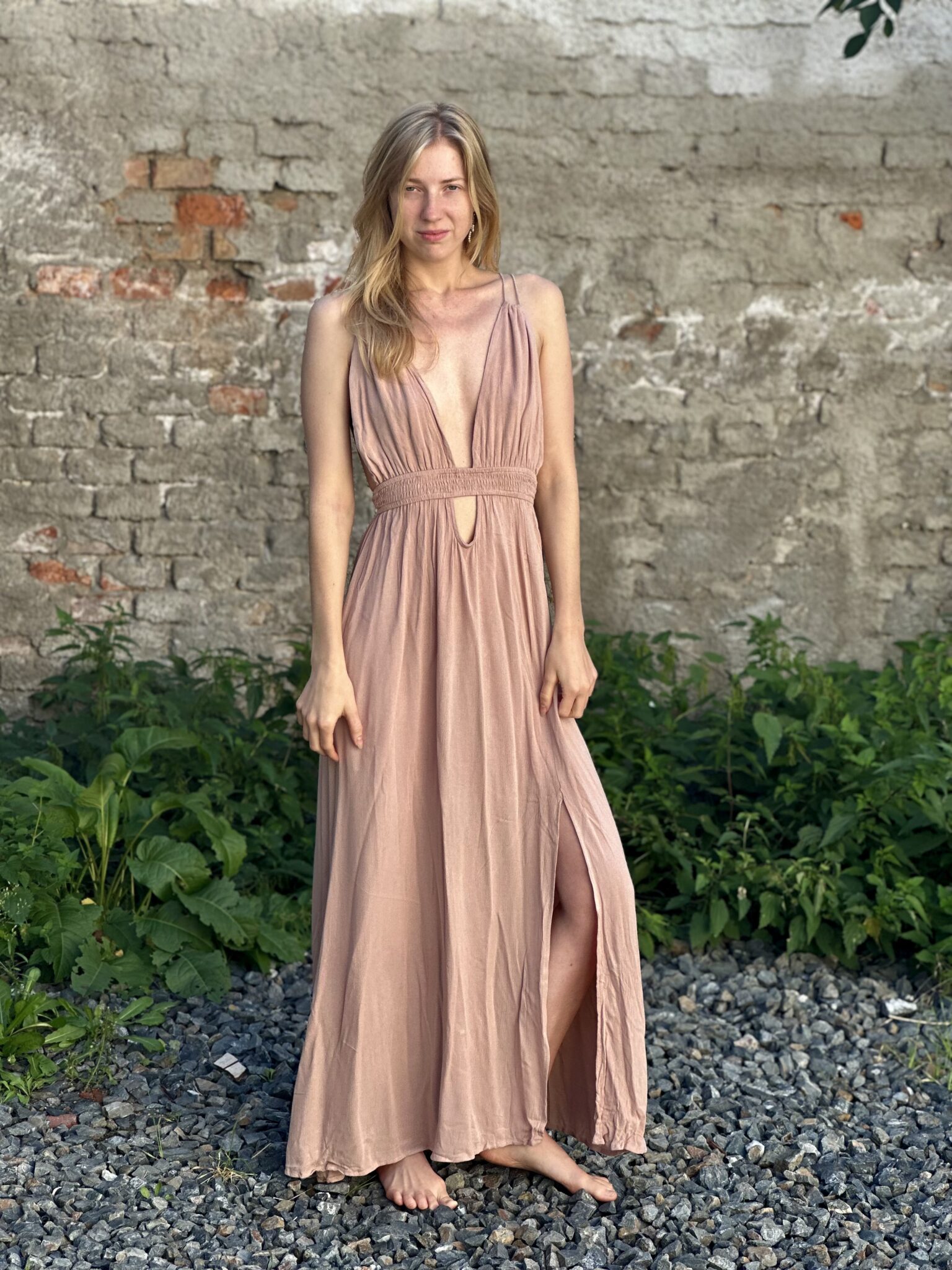 Naše šaty jsou vyrobeny ze 100% přírodní viskózy, která je velmi tenká a v létě příjemná, šaty s ní krásně vlají.
